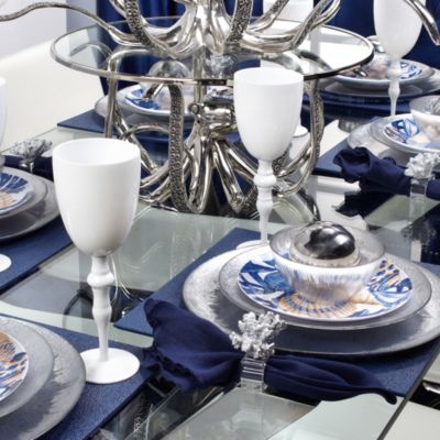 Seaside chic dinnerware made of easy care melamine perfect for indoor/outdoor use