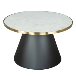 The Aiden Coffee Table has powder coated steel frame with plated accents and a marble top. This glam piece looks great in any design space, boho chic or modern, and works in residential or hospitality.