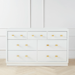 Handcrafted from solid hardwoods with mortise-and-tenon joinery, the Astoria Dresser from Newport Cottages is built to last. Outfitted with seven spacious, soft-closing drawers, this design adds classic, sophisticated style to any space, while its gleaming Lucite-and-brass hardware lends a hint of drama. Made in the USA.
