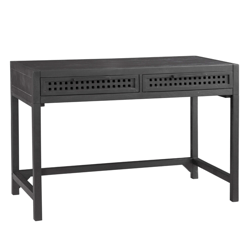 The Brysen Desk will be the highlight of the room, featuring sand blasted natural mango wood in a matte black finish. Features square fretwork on the drawer fronts and large metal bar pulls for an industrial flair.