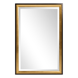 Our Cooper Wall Mirror is a striking piece featuring a simple rectangular frame. It is the finish that makes this mirror stand out from all the rest. The main frame is finished in a rich glossy black that is trimmed on the inner and outer borders in a lovely gold leaf. It is a perfect focal point for an entryway, bathroom, bedroom or any room in your home. D-rings are affixed to the back of the mirror so it is ready to hang right out of the box in either a horizontal or vertical orientation! The mirrored glass on this piece is beveled adding to its beauty and style.