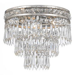 Dazzling with faceted cut crystal, this flush-mount sparkles from all angles. Especially if viewed from the bottom, the unique design forms a stunning metal floral design. The opulent crystal paired with the hand-painted metal work allows this fixture to bring luxurious appeal to a variety of interior spaces.