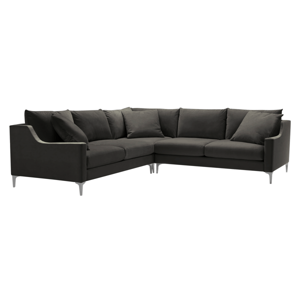 Offering countless combinations with three arm styles (track, slope, or soft roll), two cushion fills (for a plush or structured look), two leg finishes (brushed silver or espresso), and over 30 gorgeous fabrics, the pieces in our Details Collection will complement your unique style, whether it’s glam, modern, traditional, casual, or anything in between. Shown in Bella Velvet Grey with brushed silver legs.