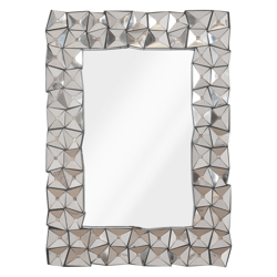 Cool and contemporary, this mirror’s hand-polished stainless steel frame features an artful textural design made from carefully inlaid pieces of geometric forms.