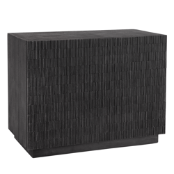 Domingo Server features a Rustic Modern inspired design. It is constructed with sandblasted solid mango in a deep, charcoal finish. This cabinet has two oversized doors and also features a chiseled design element and has a single fixed shelf and BMC standard media cord management.