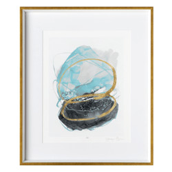 This limited-edition abstraction from artist Jennifer Goldberger is ideal for bringing a chic, modern note to your wall. Printed on archival paper with hand-embellished gold accents, this piece is displayed under glass in a white-and-gold frame.