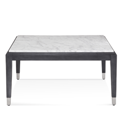The Finnian collection features modern contemporary styling with high constrasting black and white finishes. The genuine marble table top sits on a brushed graphite, black wood frame. The white and gray marbling compliments the nickel footcaps.