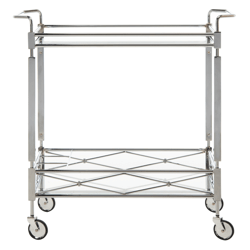 The Ingrid bar cart is a perfect addition for any entertaining moment. With its 2-tier design and beautiful silver finish, this sleek and stylish bar cart is a perfect way to display spirits and glassware in style.