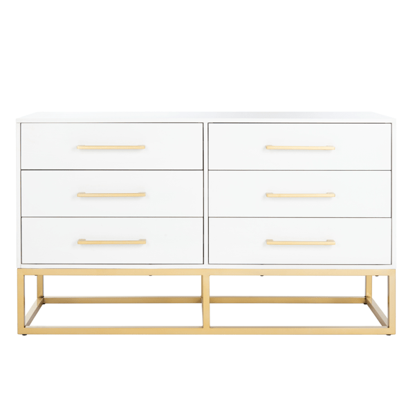 Alive with natural beauty and a dynamic modern pattern, this contemporary dresser brings style to any bedroom. Designed with a white finish and substantial brass metal hardware and legs.