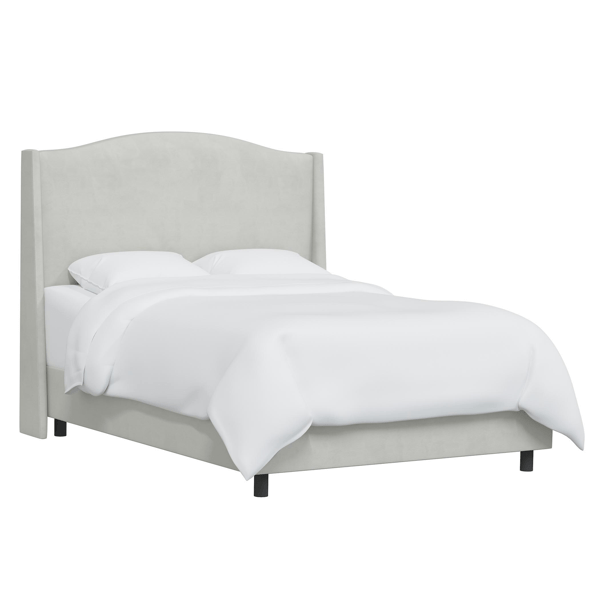Crafted with a sturdy kiln-dried hardwood frame, this bed boasts a swooping, wingback-style headboard and neatly tailored upholstery. Mattress and box spring required. Made in the USA. Shown in Velvet Pearl.