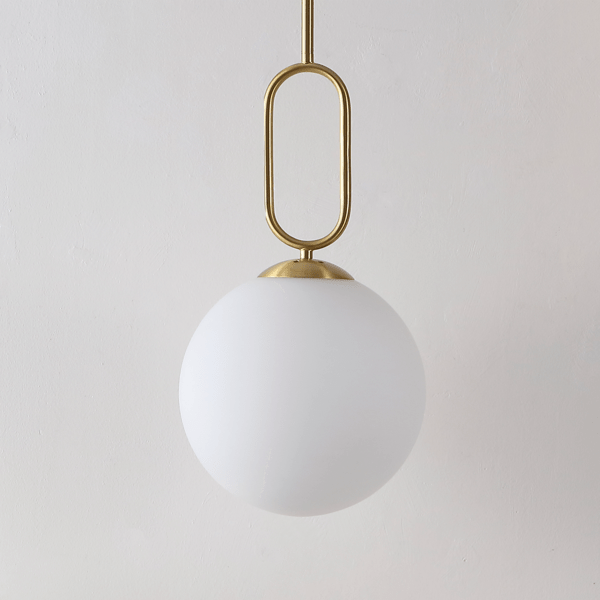 Make a refined style statement with our Lavina extendable pendant. Taking inspiration from the popular Art Deco movement, our pendant light stands out with a minimalistic profile and gorgeous design details. A globe-shaped pendant is suspended from a stylized chain to add stunning detail and charm to the ceiling light. Its white shade and brass hardware add a refined touch of luxury to any room.