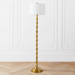 Topped with a crisp drum shade, this floor lamp is crafted with an undulating design that adds texture and visual interest. An antiqued gold finish brings plenty of warmth and shine.