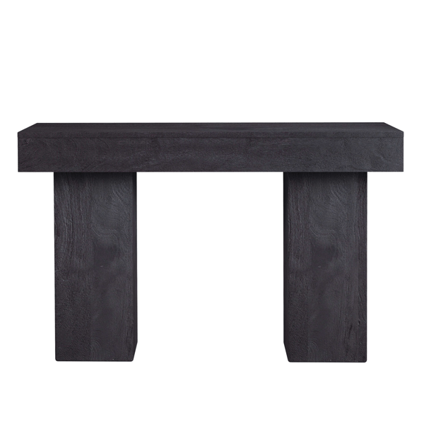 The Novak collection features clean lines in a solid mango construction with a dusty black finish. The sharp lines and matte black finish give the collection a modern flair. Finished in a dusty black allowing some grain to show through.