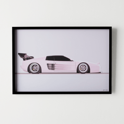 Get set to dance the night away with Z Gallerie's first ever collab with Oliver Gal! Inspired by the fun, glamour, and inclusivity of the disco era, the collection features museum-quality pieces, many of which boast embellishments added by hand. This sportscar is pretty in pink and primed to grace the walls of your home. Glossy art print is mounted within a high gloss black wood shadowbox and set under plexiglass. Available in three sizes.