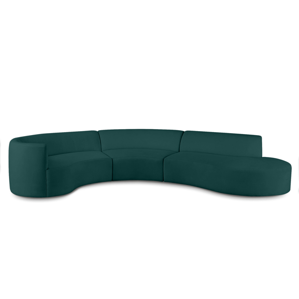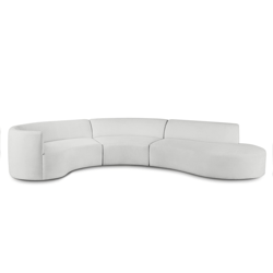 With its elegantly curved silhouette, neatly tailored upholstery, and extra-deep seats, this low-profile three-piece sectional makes a stylish, modern statement in any space. Shown in Kenley Chenille Snow.