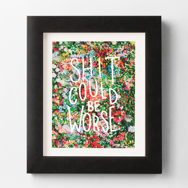 Shit Could Be Worse is printed on a satin wood finish and comes exposed for a more artistic look.