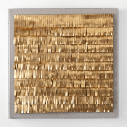 Looking to add something sleek and sophisticated to your space? This piece entitled Symphony fits the bill. Curved iron elements are painted in gold and set in a clear acrylic shadowbox. Display this stunner on your wall, and guests are sure to inquire about it.