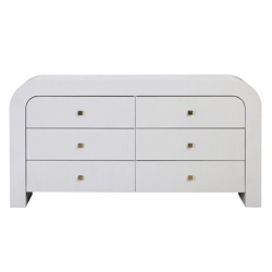 Featuring a rounded silhouette and white acacia finish, this dresser makes a modern and stylish addition to the bedroom, while the carved stripes on each drawer front provide subtle texture. The six spacious, soft-closing drawers are accented with square gold-finished hardware, adding visual interest and luxe shine.