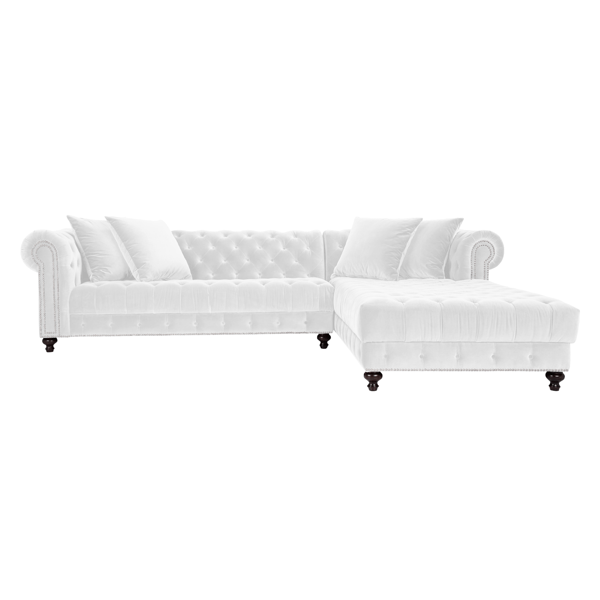 Z Gallerie’s exclusive Wakefield sectional displays distinctive style, with oversized rolled arms embellished with a double row of nailhead trim, button tufted seat and interior arms and back, and turned legs finished in an Espresso stain. Each piece is constructed by a team of expert artisans to ensure ultimate quality and durability.