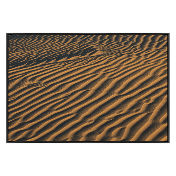 With its close crop and striking composition, this photograph of windswept dunes from artist Addison Jones brings abstract appeal to the wall. Printed on canvas with an image brush gel finish for added texture, this piece is displayed in a black floater frame.