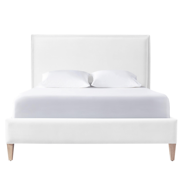 Framed in sturdy kiln-dried hardwood, our Wren platform bed makes a stunning focal point in the bedroom with its modern, clean-lined headboard finished with elegant double-flange edges. Shown in Royale Plush Velvet Evergreen.