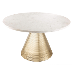 Boldly shaped, our Zoe coffee table brings a luxe architectural touch anywhere its placed. Featuring a swirling white marble surface and conical glossy gold ribbed base.Â
