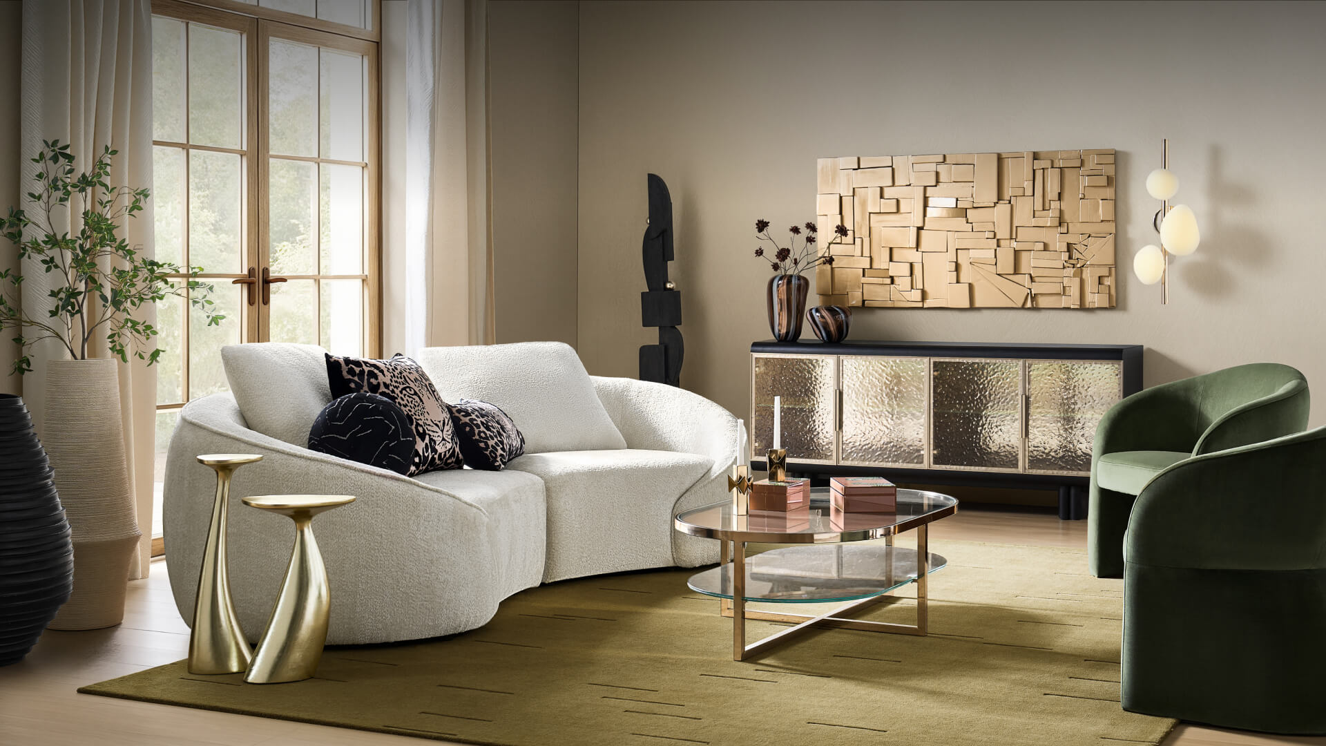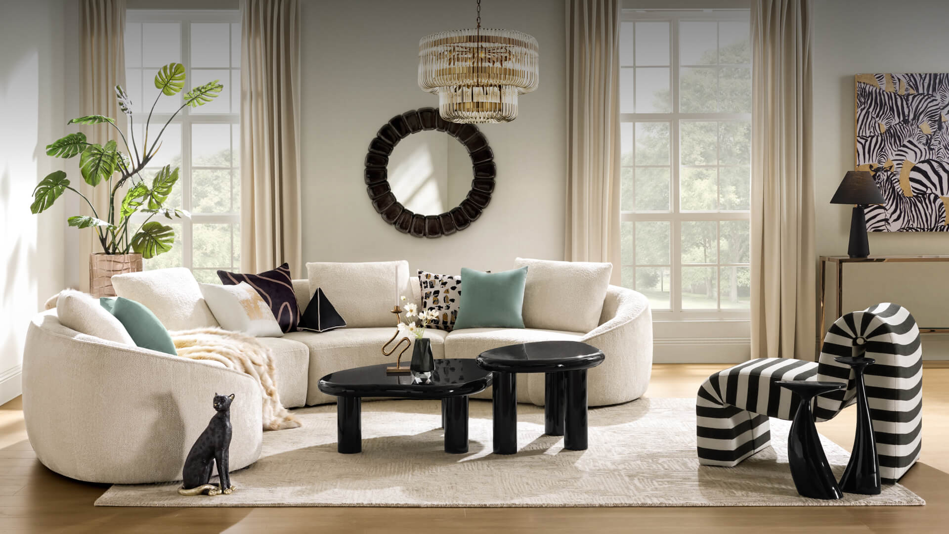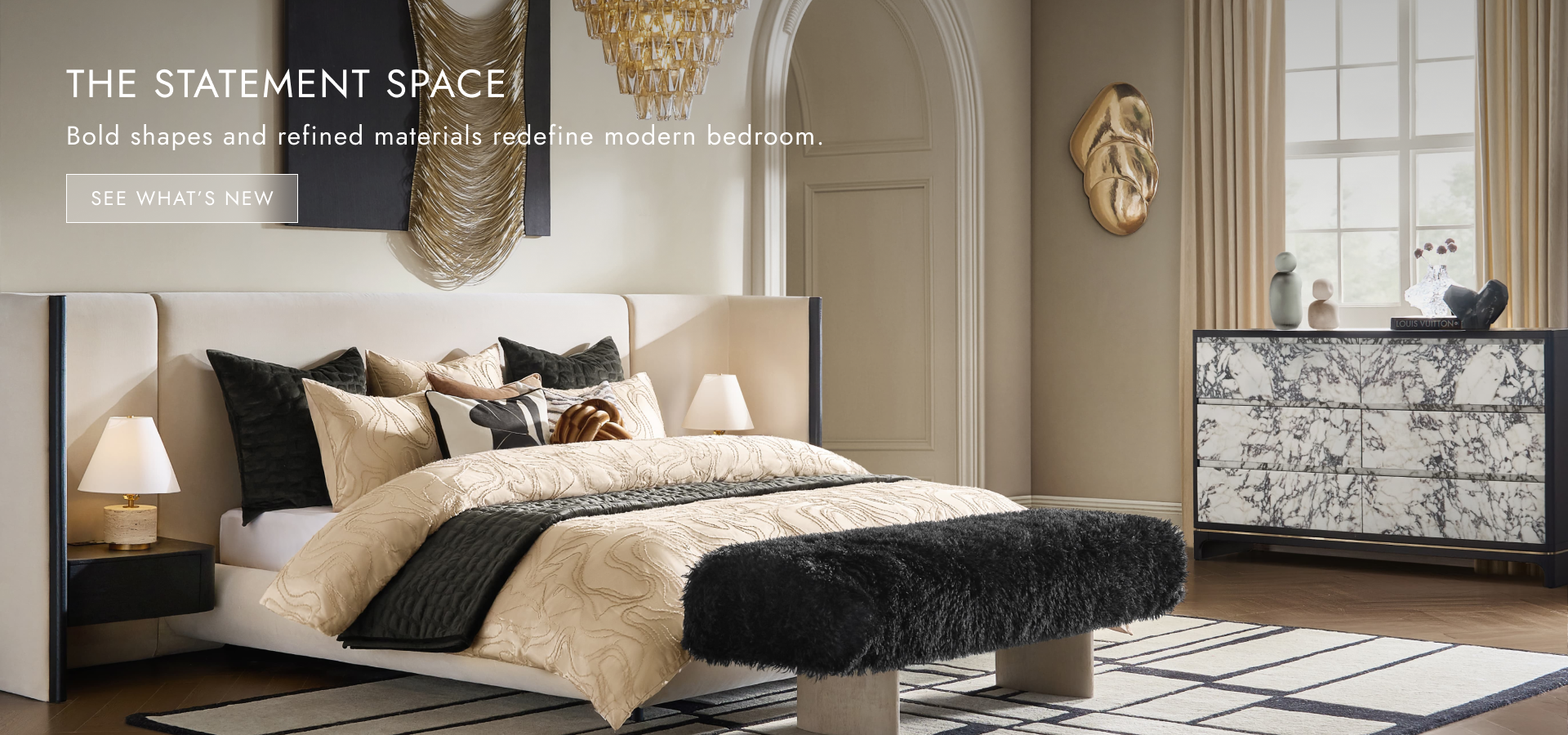 Z Gallerie offers a curated collection of modern home furnishings and housewares crafted for impact. Shop Living Room Furniture—from modern velvet channel-tufted sofas and bouclé accent chairs to smoked-glass coffee tables and media consoles. Elevate gatherings with Dining Room Furniture—marble pedestal dining tables, upholstered dining chairs, bar & counter stools, and sideboards. Create a retreat with Bedroom—beds, dressers, and nightstands. Finish every space with Chandeliers (crystal beaded, linear, flush-mount), Rugs, Mirrors, Canvas Art and Grand-Scale Art, sculptural décor (vases, trays, bookends), and textiles—velvet bedding, bouclé & faux-fur decorative pillows, throws, and Custom Window Curtains. Explore New Arrivals for fresh drops and Sale for designer looks at an approachable price.