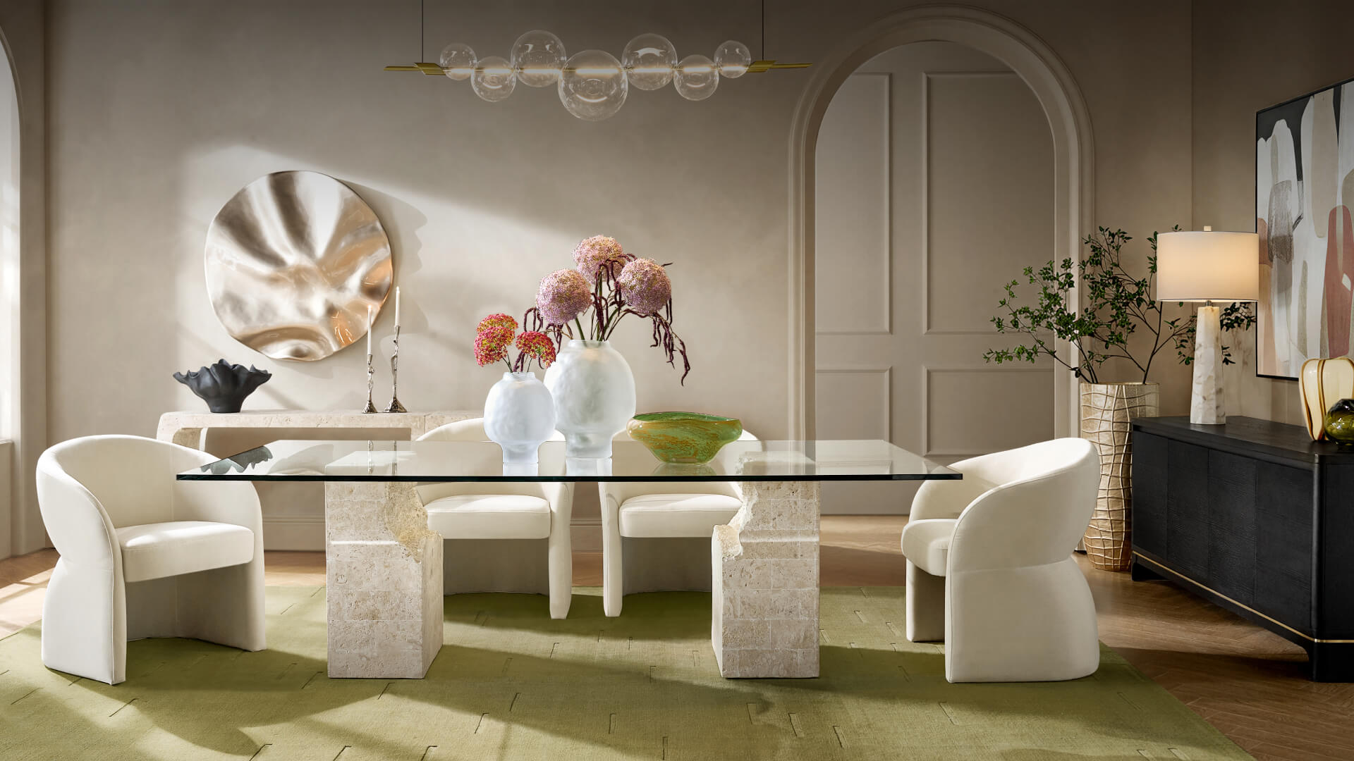 Z Gallerie offers a curated collection of modern home furnishings and housewares crafted for impact. Shop Living Room Furniture—from modern velvet channel-tufted sofas and bouclé accent chairs to smoked-glass coffee tables and media consoles. Elevate gatherings with Dining Room Furniture—marble pedestal dining tables, upholstered dining chairs, bar & counter stools, and sideboards. Create a retreat with Bedroom—beds, dressers, and nightstands. Finish every space with Chandeliers (crystal beaded, linear, flush-mount), Rugs, Mirrors, Canvas Art and Grand-Scale Art, sculptural décor (vases, trays, bookends), and textiles—velvet bedding, bouclé & faux-fur decorative pillows, throws, and Custom Window Curtains. Explore New Arrivals for fresh drops and Sale for designer looks at an approachable price.