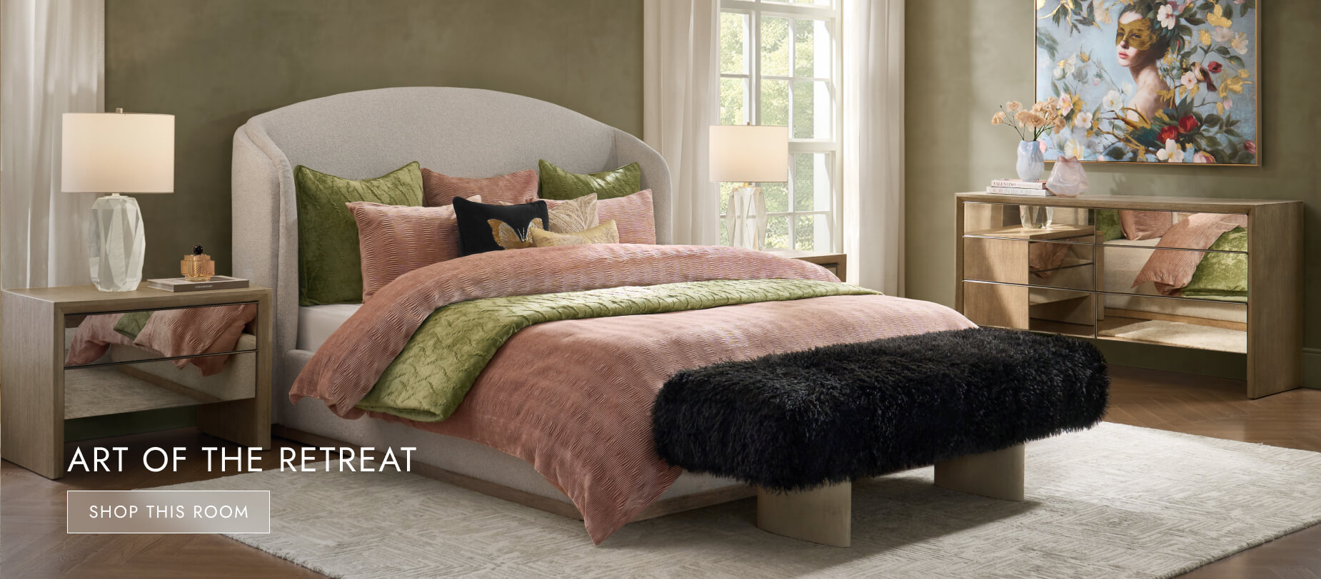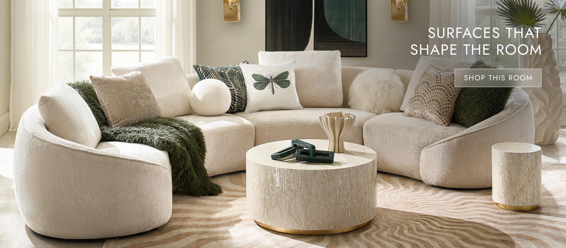 Z Gallerie offers a curated collection of modern home furnishings and housewares crafted for impact. Shop Living Room Furniture—from modern velvet channel-tufted sofas and bouclé accent chairs to smoked-glass coffee tables and media consoles. Elevate gatherings with Dining Room Furniture—marble pedestal dining tables, upholstered dining chairs, bar & counter stools, and sideboards. Create a retreat with Bedroom—beds, dressers, and nightstands. Finish every space with Chandeliers (crystal beaded, linear, flush-mount), Rugs, Mirrors, Canvas Art and Grand-Scale Art, sculptural décor (vases, trays, bookends), and textiles—velvet bedding, bouclé & faux-fur decorative pillows, throws, and Custom Window Curtains. Explore New Arrivals for fresh drops and Sale for designer looks at an approachable price.