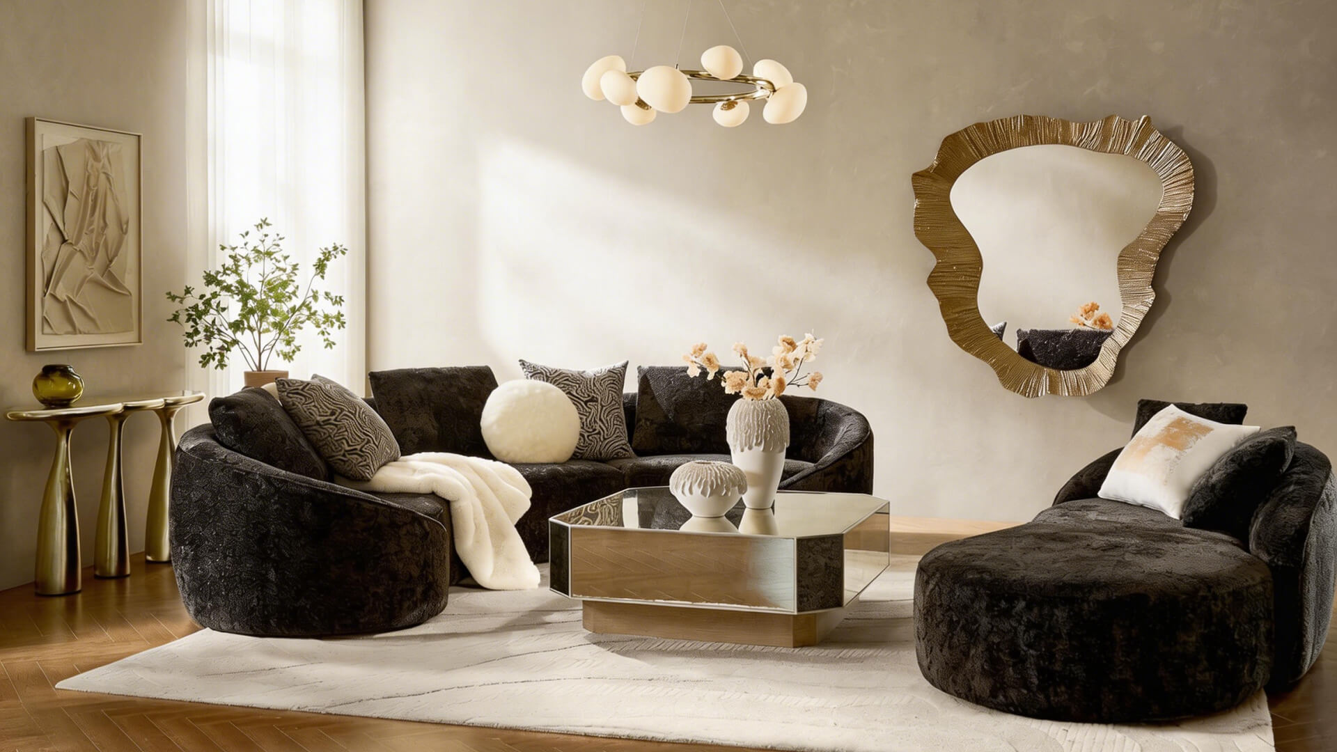 The right companion pieces can enhance the impact of your curved sofa while maintaining a cohesive, high-end aesthetic.