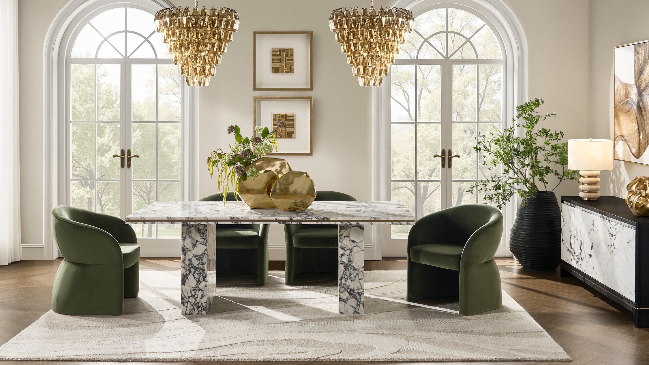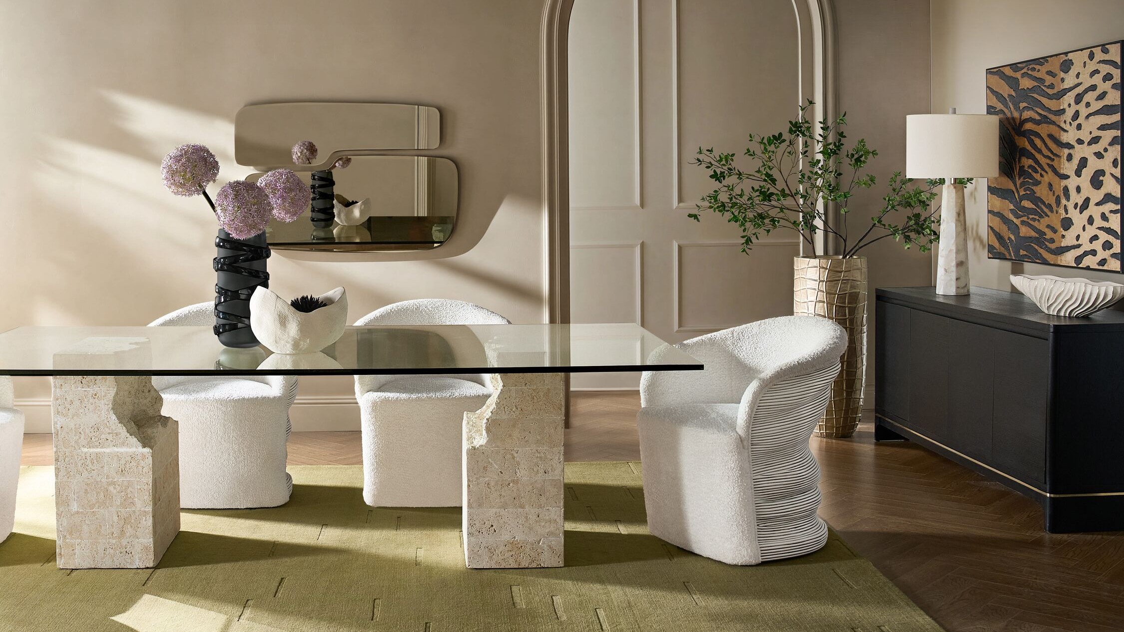 Set the stage for unforgettable gatherings with Z Gallerie’s collection of modern dining room furniture and elevated décor. Whether you’re hosting an intimate dinner or a celebratory feast, our luxury dining tables, sculptural chairs, and statement-making buffets transform everyday meals into artful experiences.