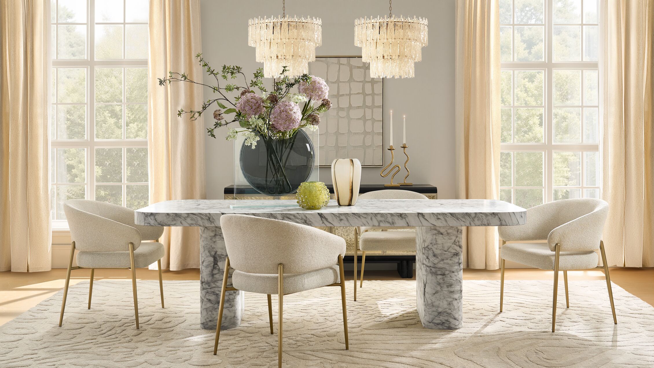 Dining Armchairs: Add a regal touch to your table with dining armchairs that offer extra support and elegance. Choose from sculptural frames, channel-tufted backs, and metallic or lacquered finishes for a dramatic, high-end look.