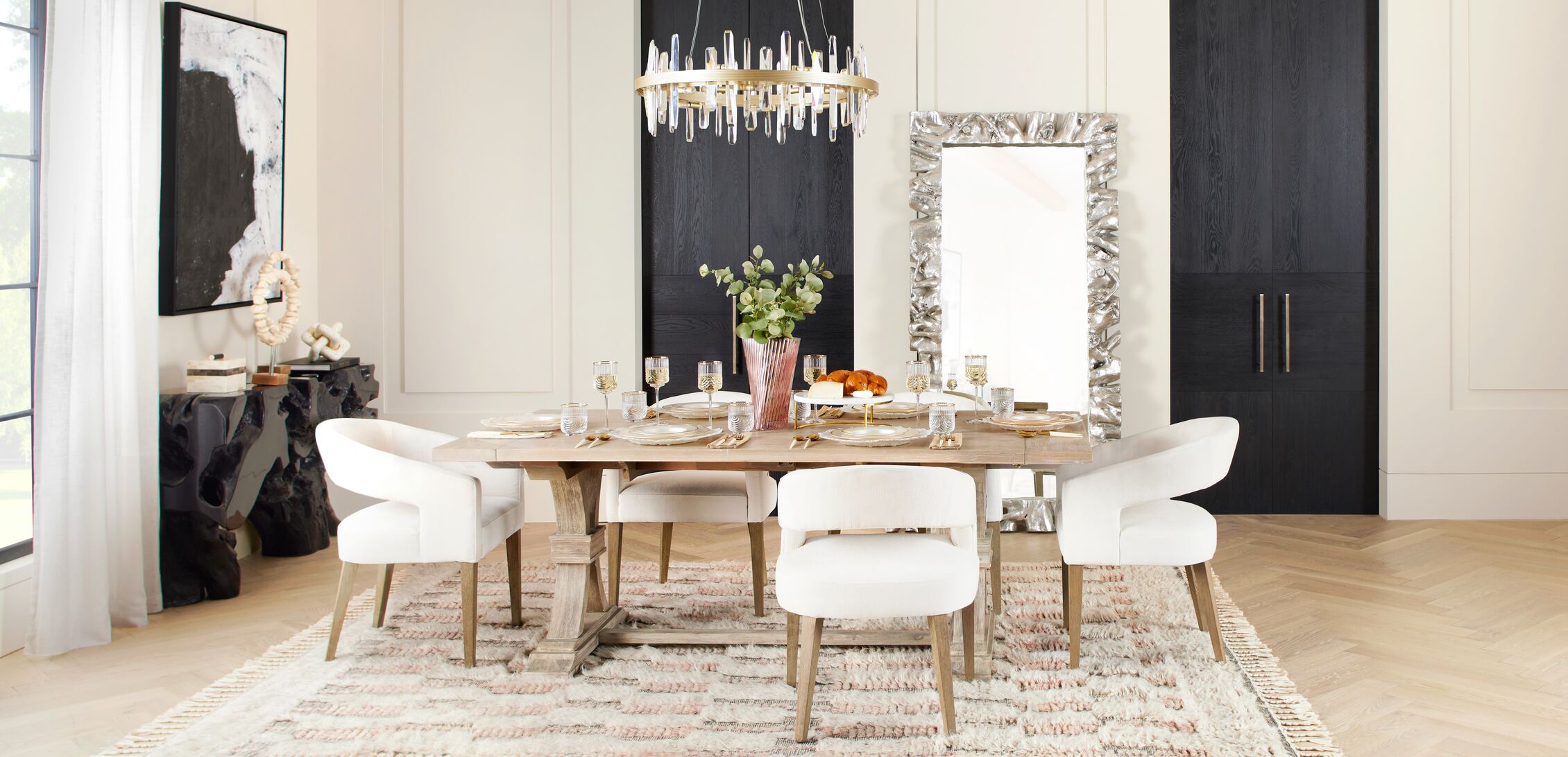 Everyday luxe perfect for parties and family time, alike, with room for 10 thanks to a set of removable leaves when you want the extra space.