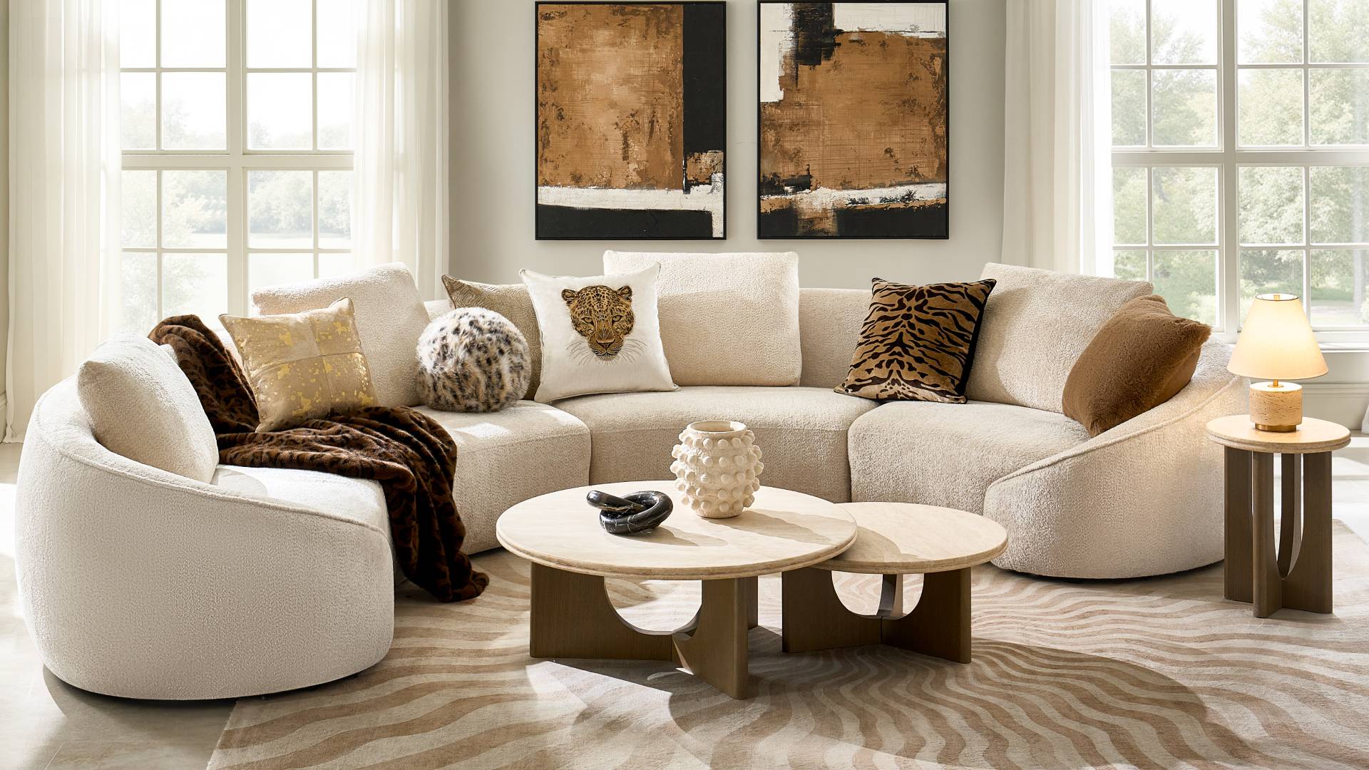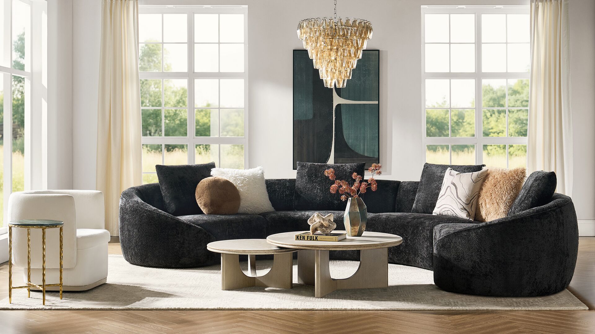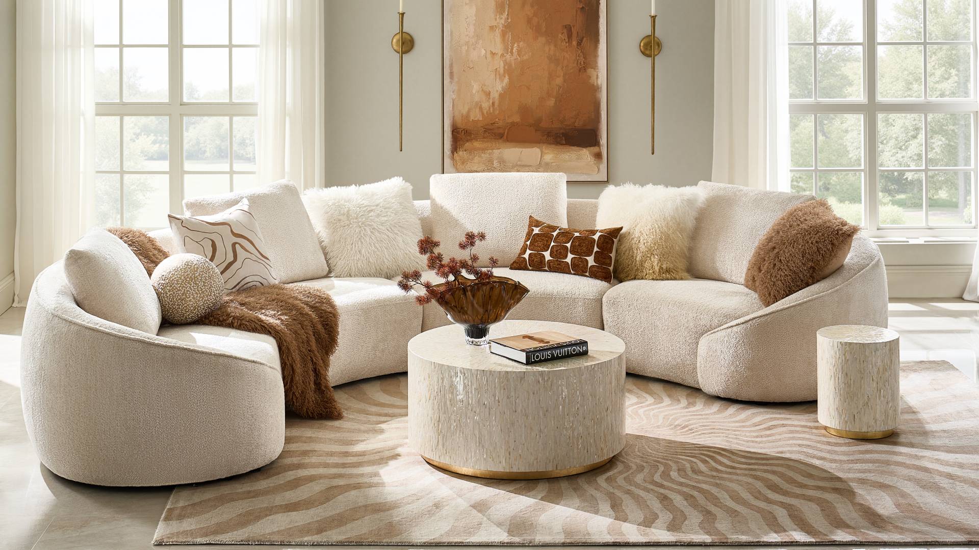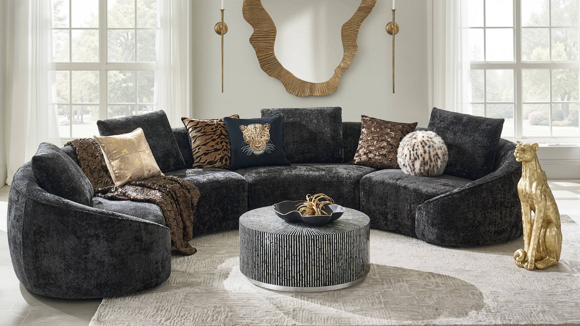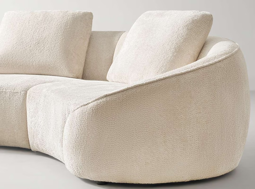 Fully upholstered in luxe chenille fabric, this collection features high-density foam cushioning for a truly superior experience. Its elegant curved design and spacious seating make it an ideal spot for intimate gatherings and lively entertaining alike.