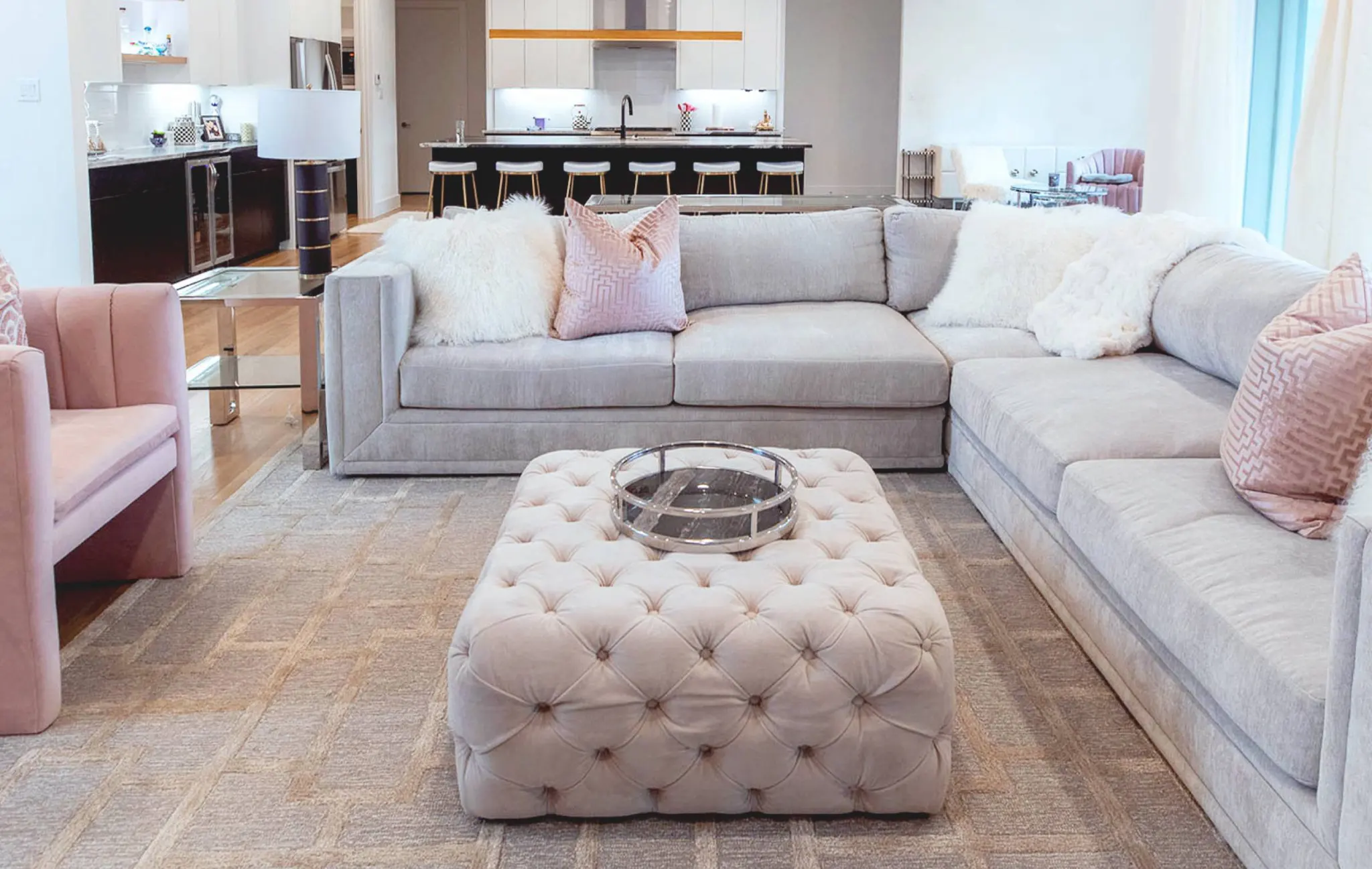 This glamorous before and after comes to us by way of Texas, where digital content creator @nextwithnita now calls home. Her spacious new living room called for an upgrade on her favorites with sprinkles of romantic and cozy throughout.