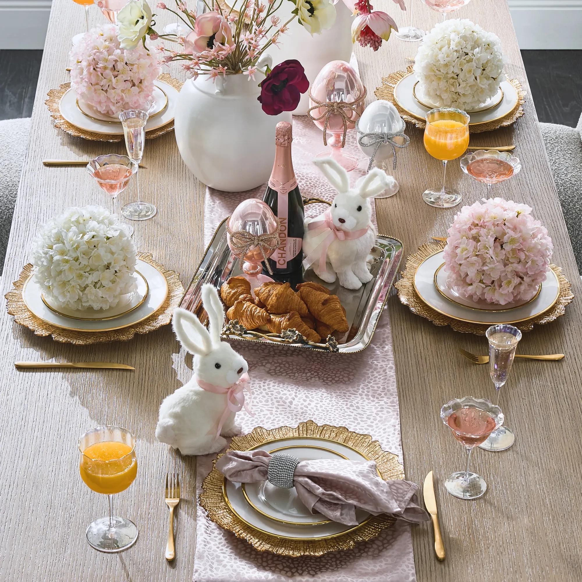 Beaded Runner$159A champagne metallic table runner adorned with glass beads for a touch of understated sparkle.