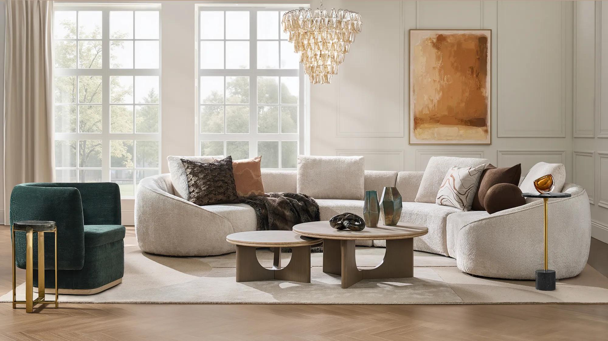 Cosima Glass Chandelier - Champagne$1299A sculptural chandelier featuring hand-blown champagne glass and a polished nickel frame for radiant, modern elegance.