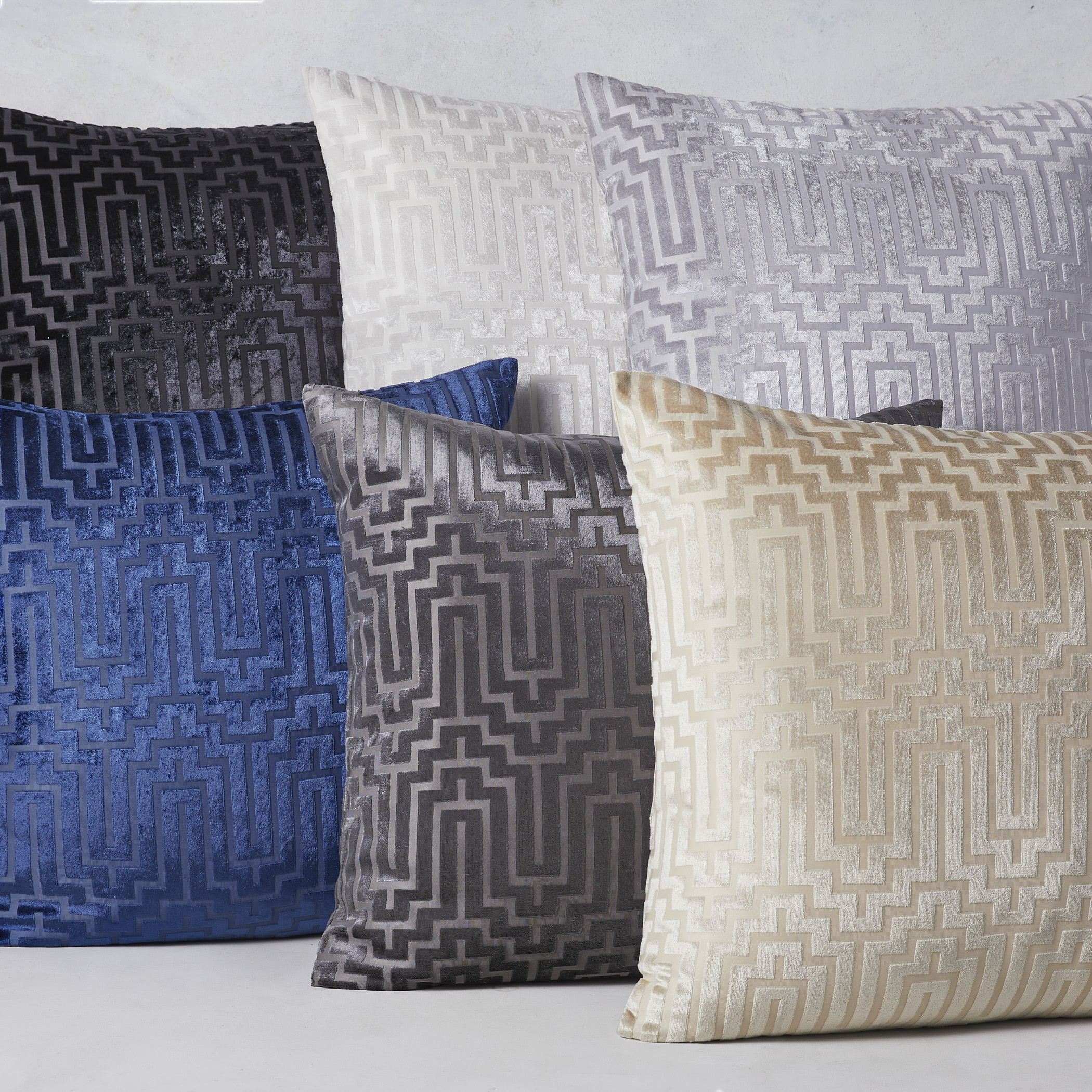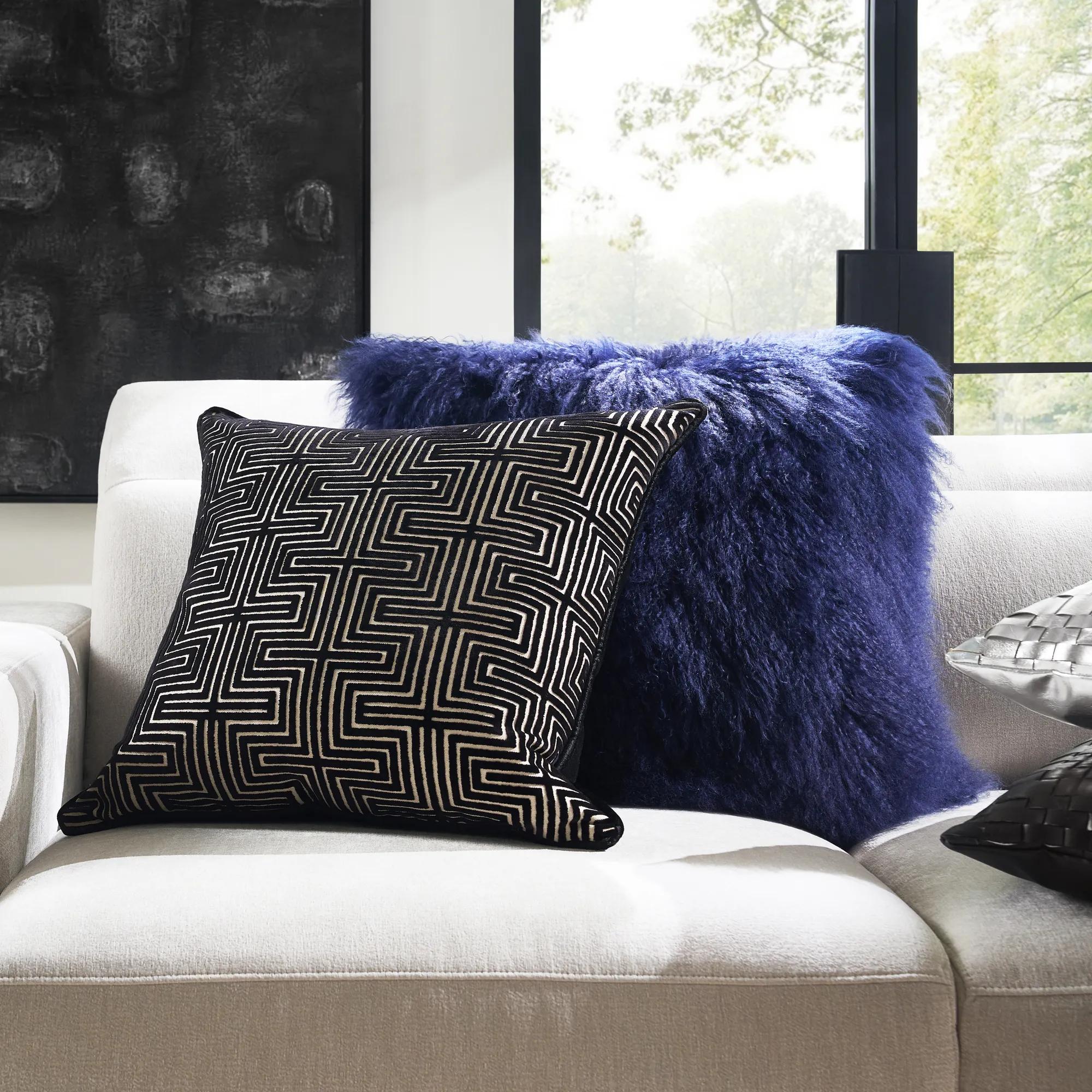 Lenox Pillow 22" - Black$89A sophisticated black pillow featuring a geometric cut velvet pattern and a removable feather-down insert.