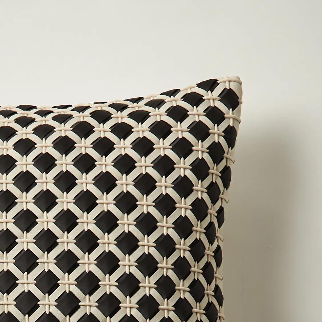 Estelle Pillow 20" - Black$89A black faux leather pillow with hand-woven rope detailing and a plush feather-down insert.