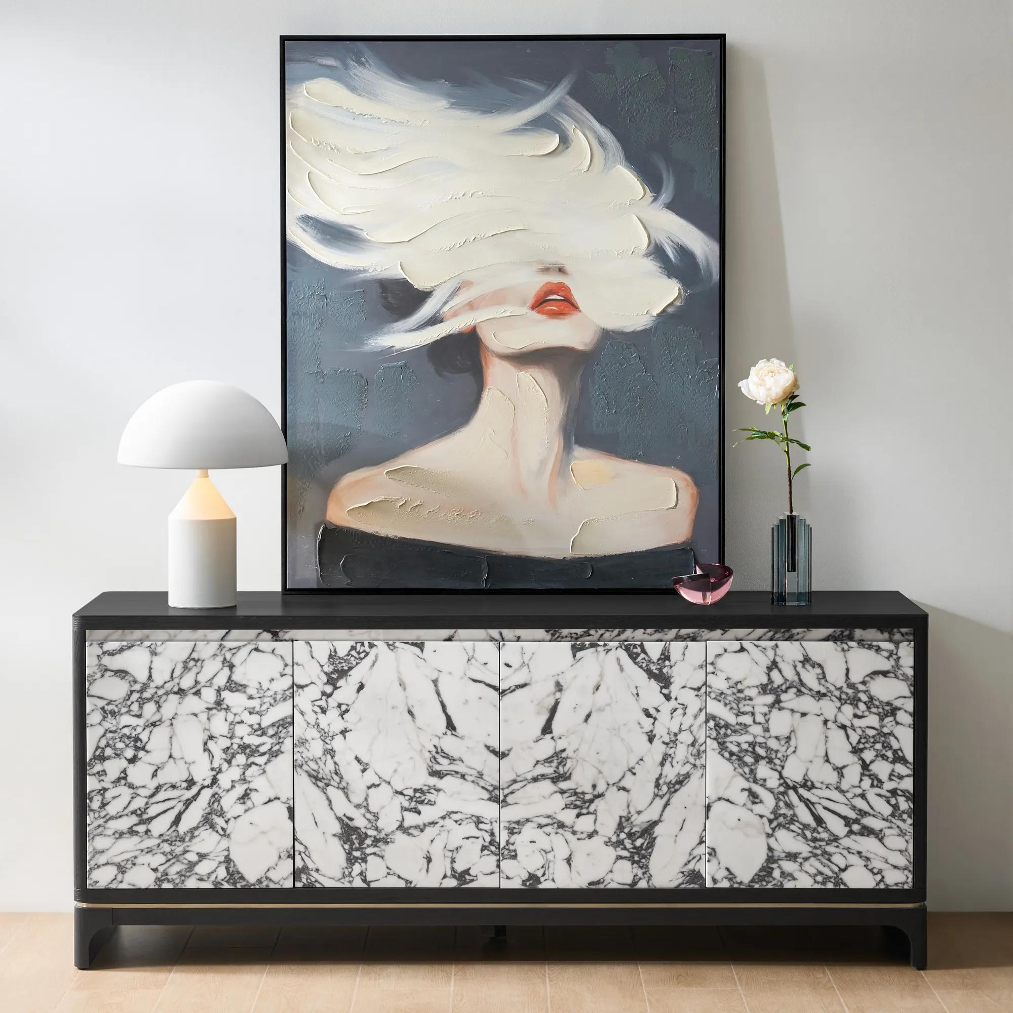 NewNew Vanta Sideboard$2499A striking matte black oak sideboard featuring genuine Calacatta Viola marble fronts with dramatic violet veining.