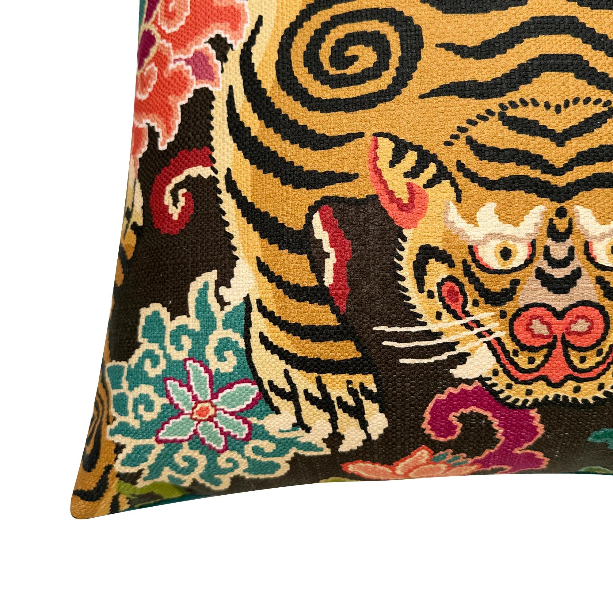 Nimer Pillow 22" - Gold/Multi$119A bold Bengal tiger pillow in gold and multicolor slubbed cotton with a plush feather-down insert.