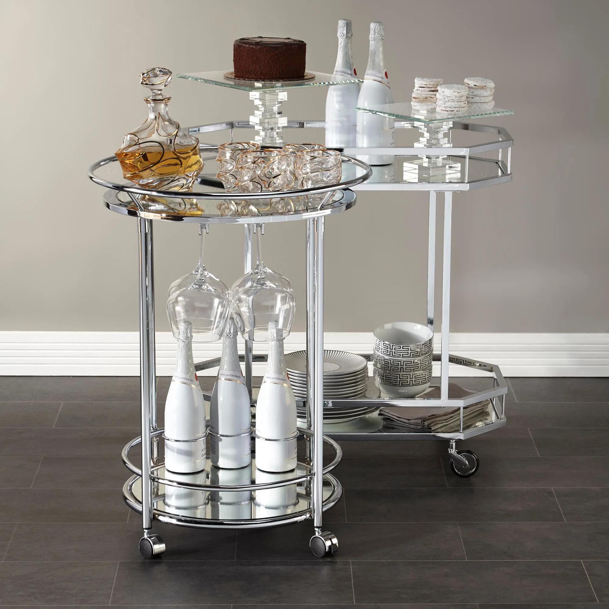 Manhattan Bar Cart$249A chrome-plated steel bar cart with mirrored trays and casters for stylish, portable entertaining.