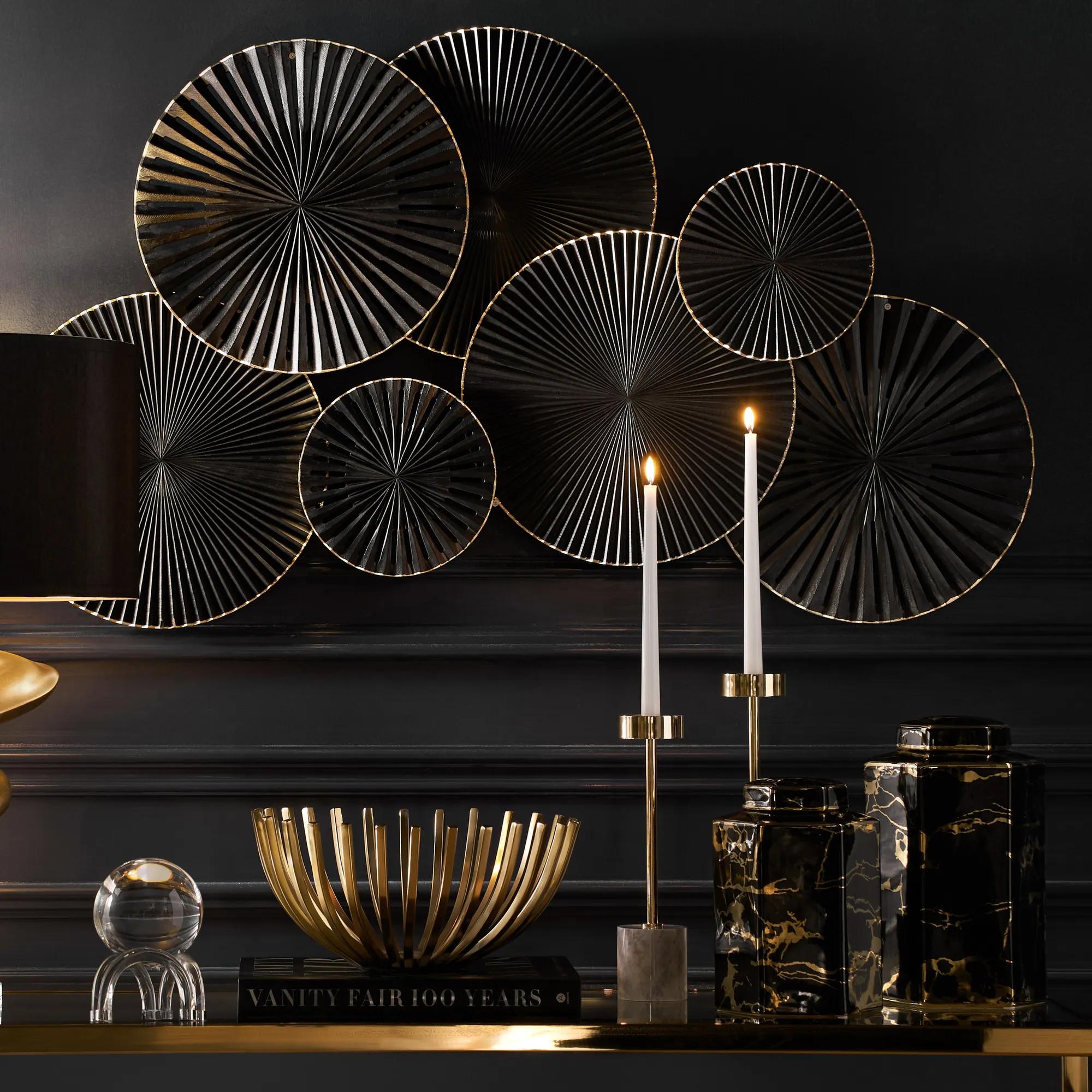 Antique brass wall mounted candle holders add a layer of warmth and vintage elegance when paired with hanging art. Position them on either side of a statement piece to frame the artwork and create a balanced, luminous vignette. The soft glow from the candlelight enhances textures and colors, making your art feel even more inviting and dynamic.