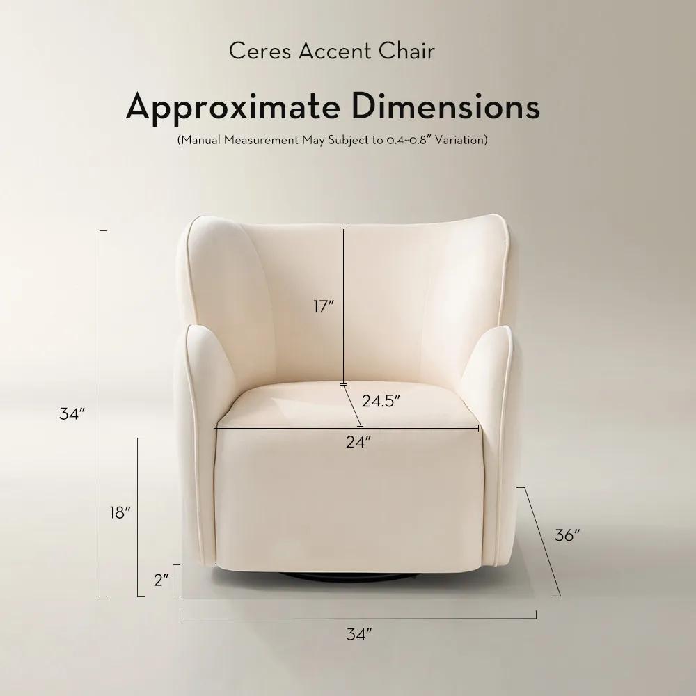 Wrapped in plush velvet over a streamlined metal frame, the Ceres Velvet Accent Chair is a living room accent chair with sculpted contours and a generously cushioned seat made for lingering. Softly rounded panels rise into a cocooning back, while the compact footprint slips easily beside sofas, consoles, or beds, reading intentional and edited from every angle.