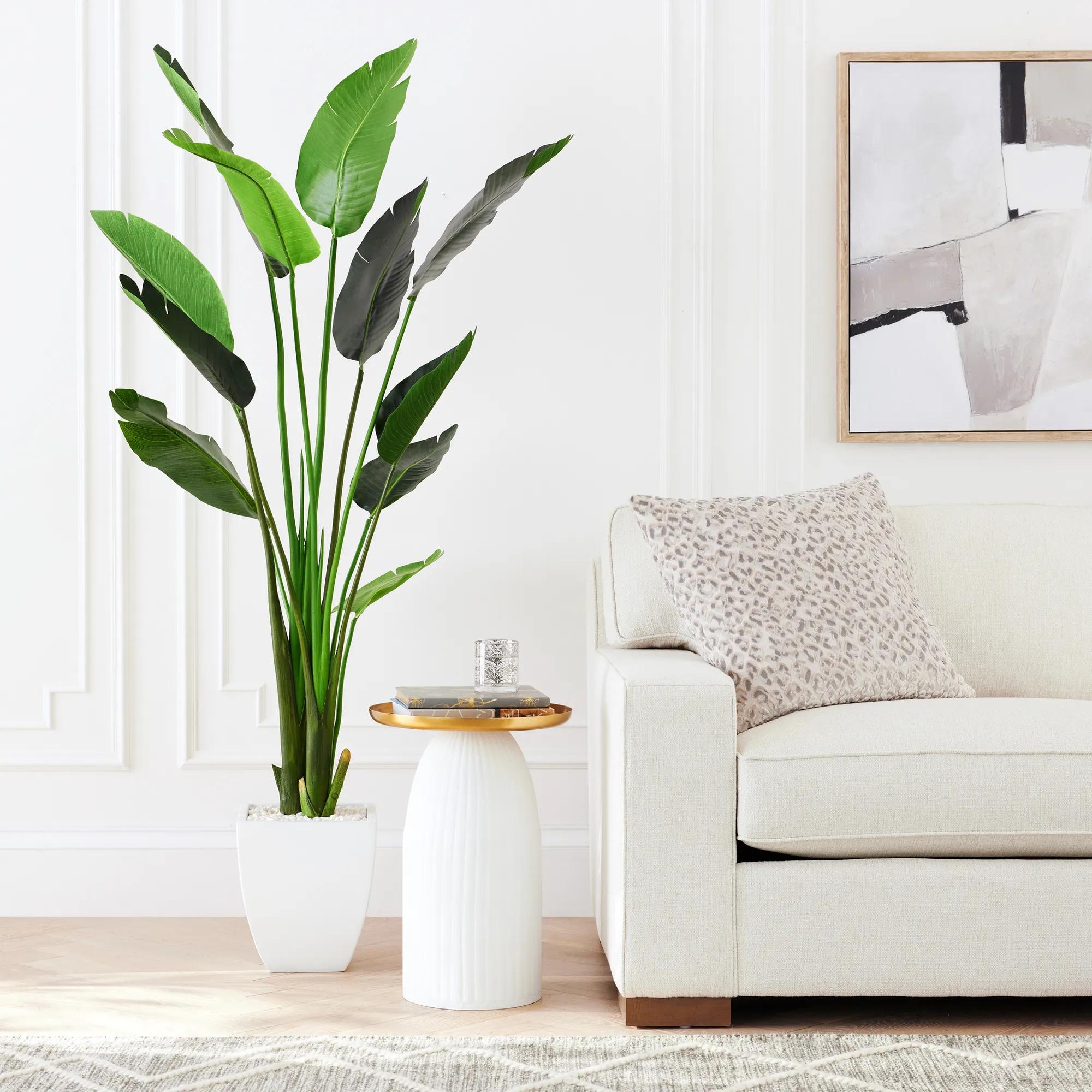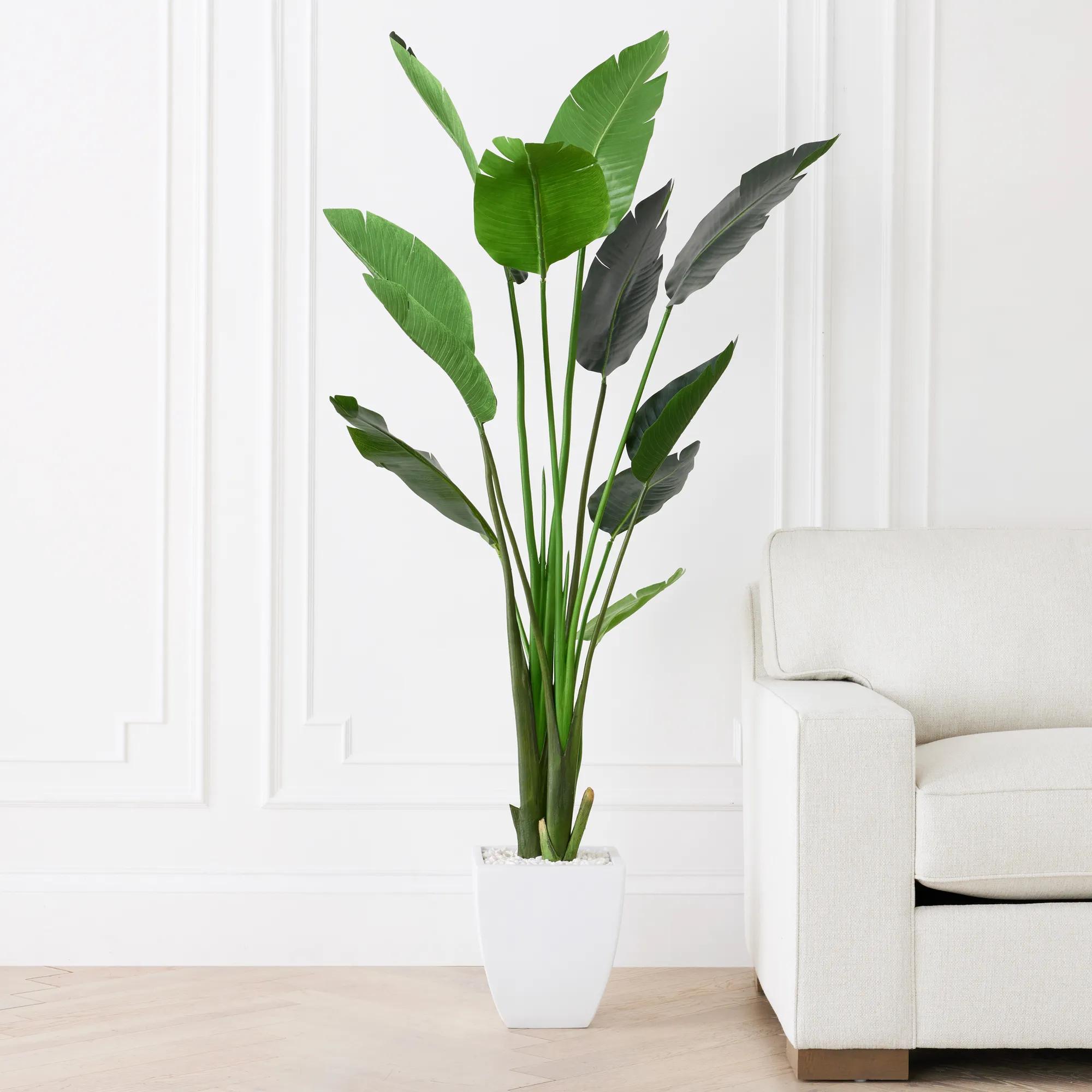 Bring a touch of the tropics into your home with our faux Palm Tree.Nestled inside a contemporary pot, graceful stalks unfurl into a brilliantdisplay of lush, fanlike leaves. Authentic to the eye, our palm willinstantly transform your space into a botanical paradise.