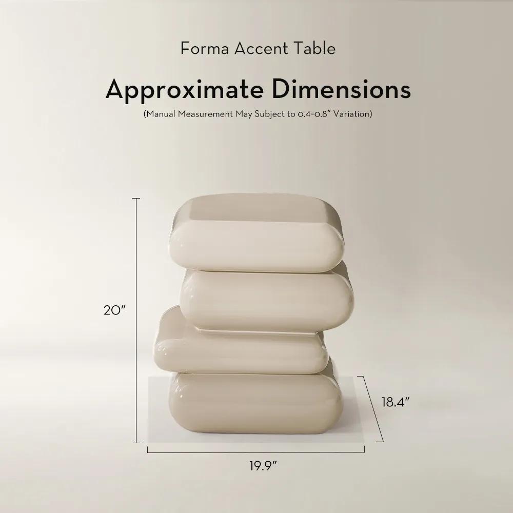 Expertly molded from fiberglass, the Forma Stacked Round Accent Table is finished in high-gloss turtle dove lacquer with a seamless, pebble-inspired silhouette, elevated by softly rounded edges and a polished, mirror-like surface. Four organically tiered layers create a smooth, stable perch for cocktails, books, or sculptural objects, turning any corner into a quietly modern focal point.