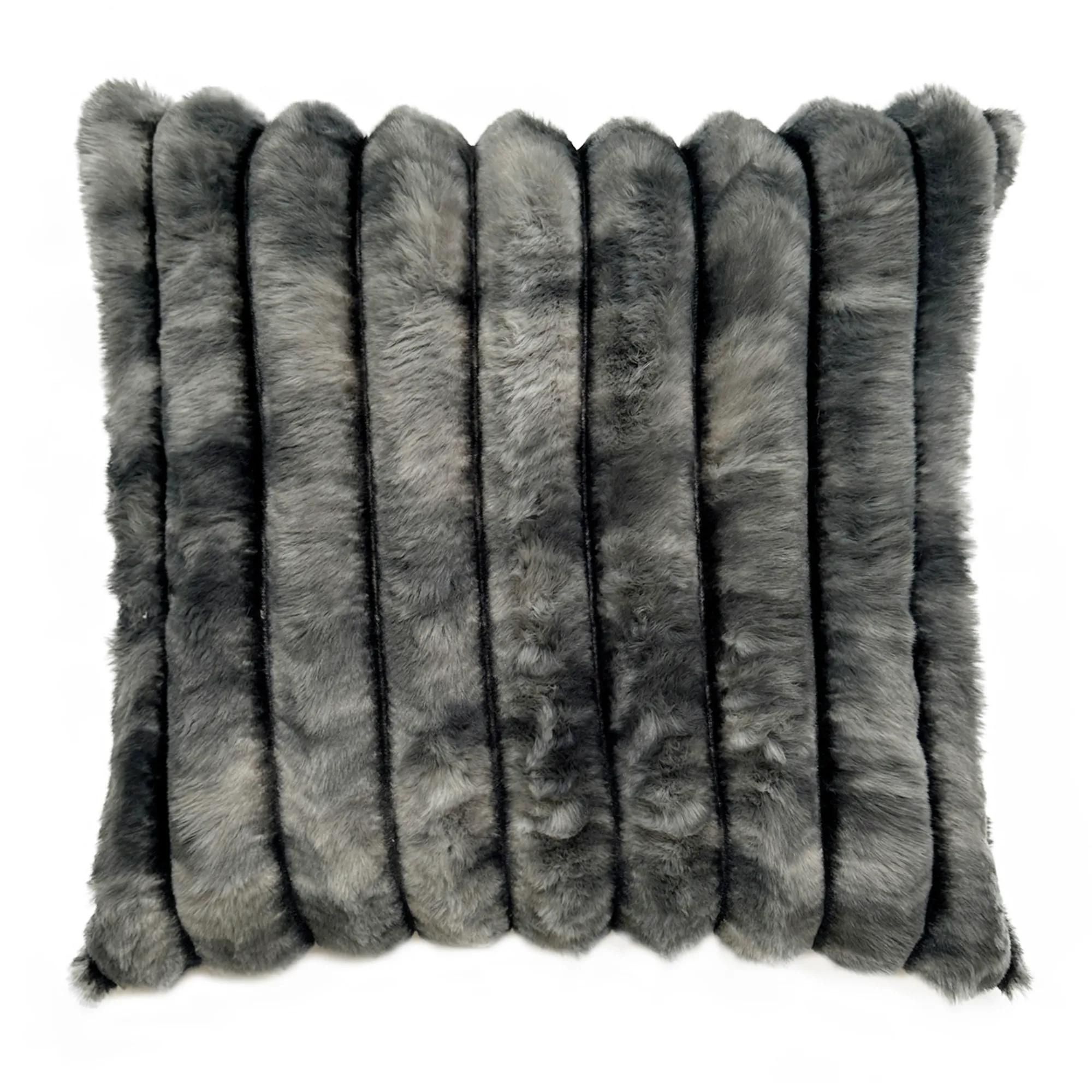 Introducing The Fur Channel Pillow: Pure Comfort! Sink into its irresistibly soft texture and transform any space into a snug sanctuary. Embrace the bliss today. Removable cover with hidden zipper closure. Plush feather down Insert included.
