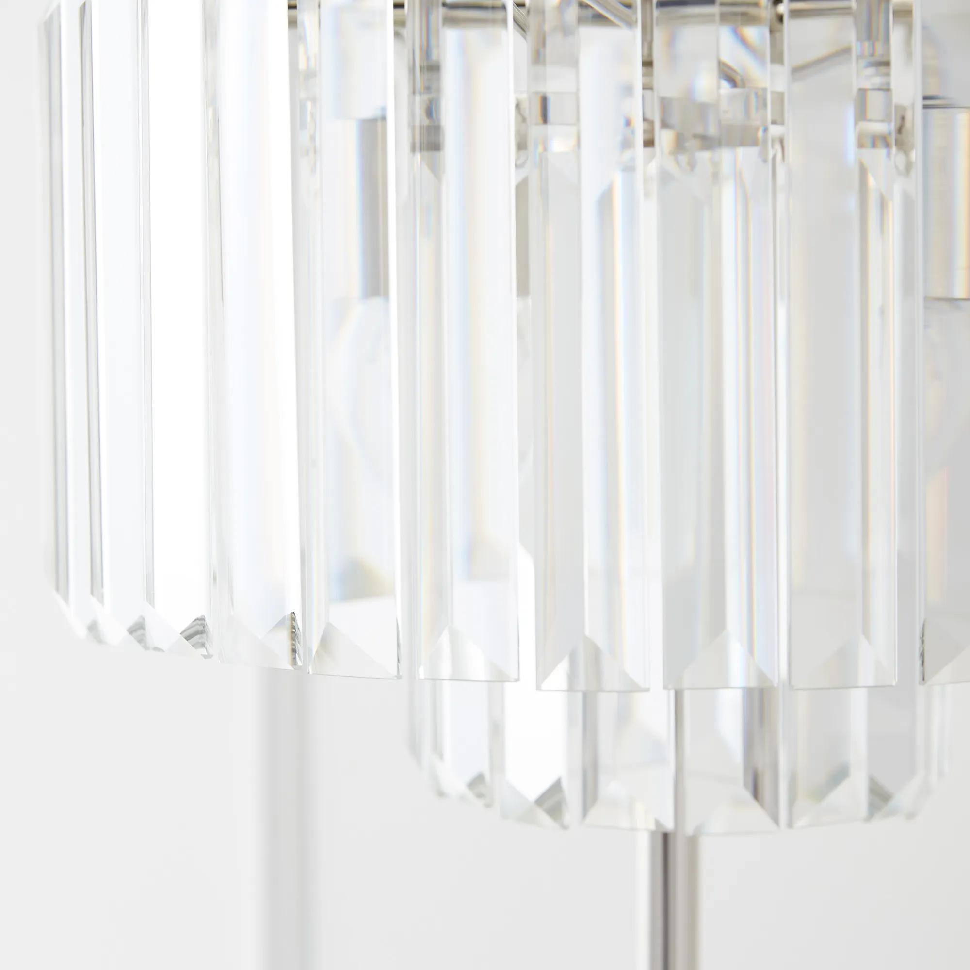 Sophisticated and refined, our Luxe Lighting Collection layers your décor with a stunning glow of light. Crafted out of ocular glass for maximum opulence, each of the independently hung faceted prisms on the Table Lamp stunningly reflect and embellish the surrounding light. Three lights in total make for a grand statement when lit, casting magnificence into its surroundings. Coordinate with our Luxe Chandelier or Luxe Floor Lamp for even more impact.