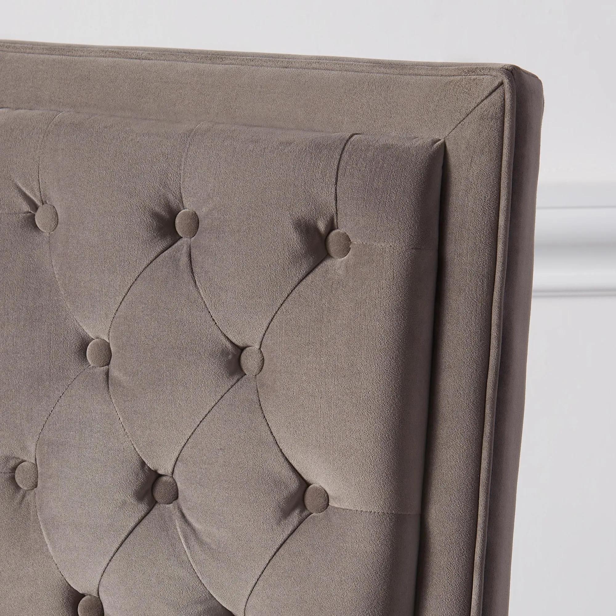 Maxwell, a modern dining chair, features deep tufts for a more tailored look, making it the perfect option for everyday use. Shown in Bella Velvet Otter.