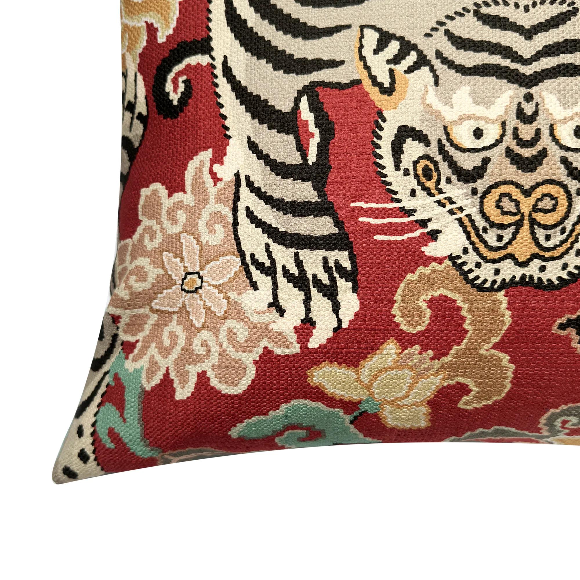 Experience the wild with our Nimber Pillow featuring a bold Bengal Tiger design. Made from heavily textured, multicolored slubbed cotton, it brings the jungle's adventure to your space. Dive into comfort and style today. Removable cover with hidden zipper closure. Plush feather down Insert included.
